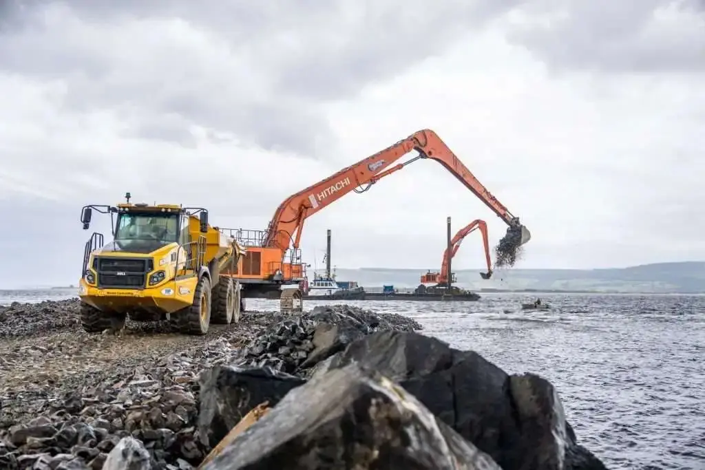 Foyle & Marine公司的Ciaran Cunningham表示:“截至目前,我们已经铺设了超过9万吨石块,工作按计划稳步推进,我们所有设备都表现得非常出色,配套的Topcon 3D挖掘机系统帮了我们大忙,帮助我们更高效地完成工作,因此我们有望在年底前即完成护堤建设,当然前提是天气允许。”