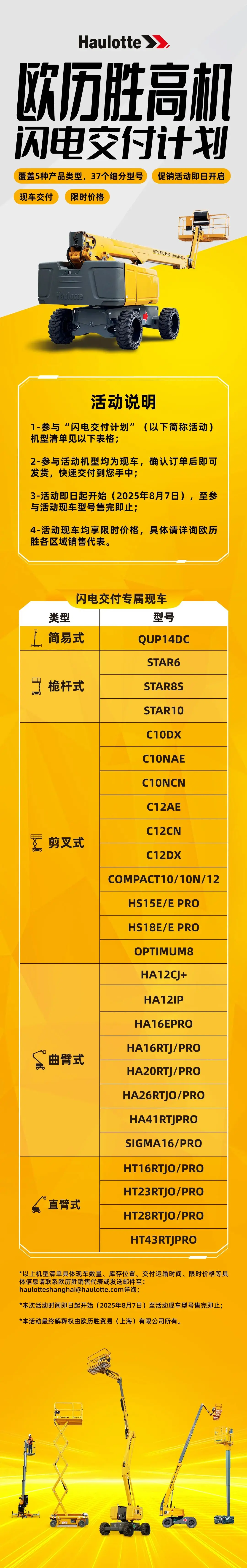 法国欧历胜(Haulotte)作为拥有百余年历史的高空作业设备制造商,自创立以来,便将"安全至上"的理念深植于品牌DNA中。从最初生产机械设备到如今成为高空作业平台领域的全球领导者,欧历胜始终将安全视为企业发展的核心使命。