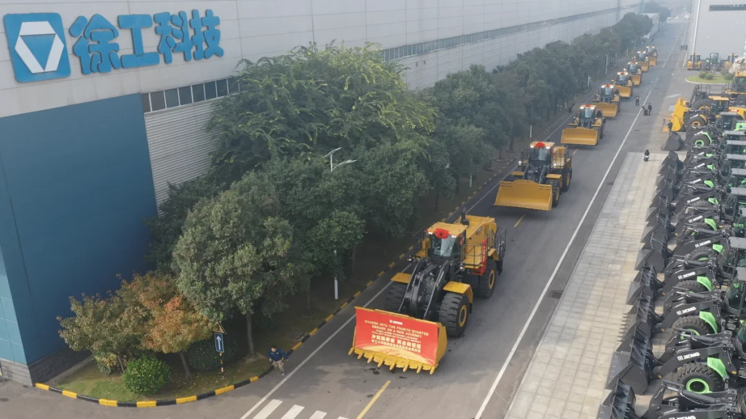 徐工集团年终收官之际,批量装载机发车,包括XC9150XE电驱动装载机、LW1200KN和XC998等多款明星产品,以及近百台XC958EV-ULTRA纯电动装载机交付能源企业,展示徐工在工程机械领域的智造实力和环保技术。