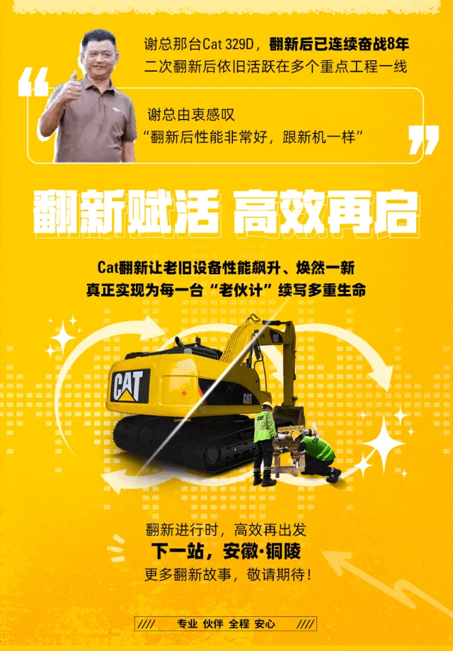 文章来源于Cat挖机互动中心,介绍了在福建三明进行的翻新项目,旨在提高设备效率,实现高效再出发。