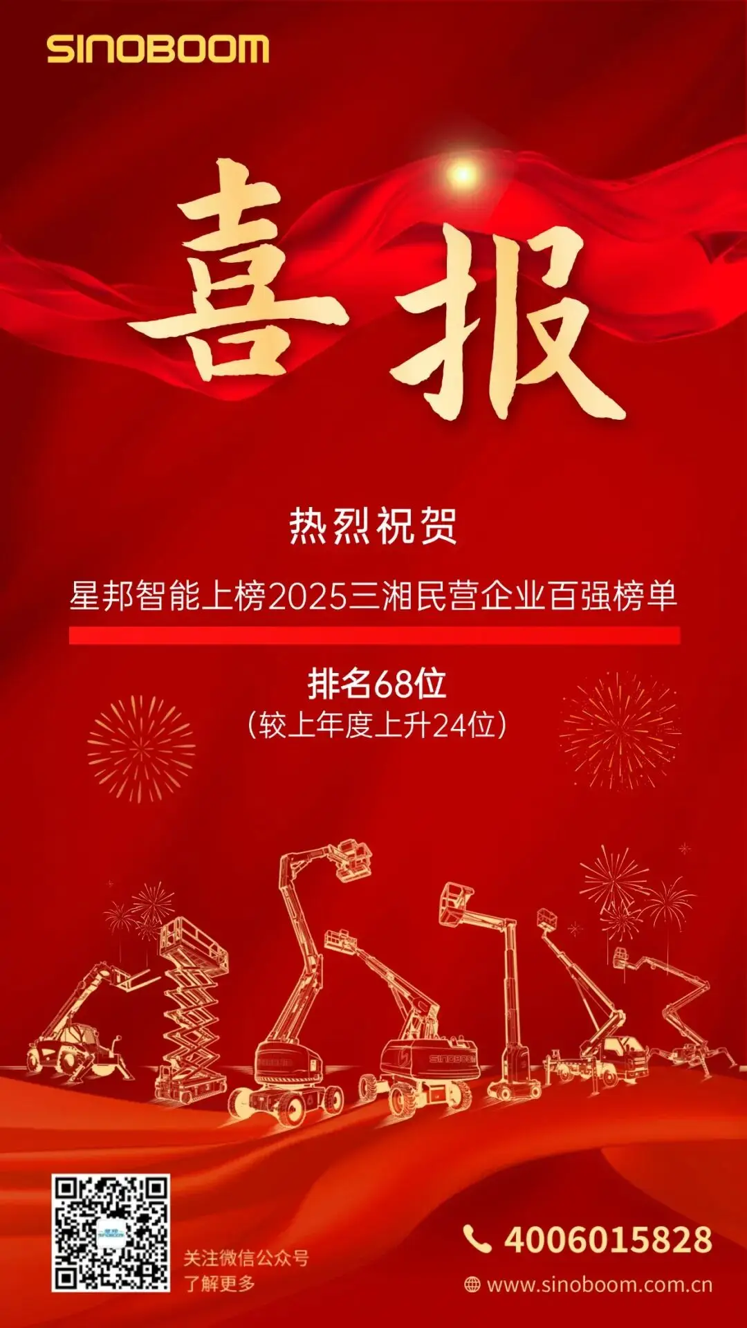 星邦智能SINOBOOM在最新的三湘民企百强排名中提升了24位,公司业绩显著。
