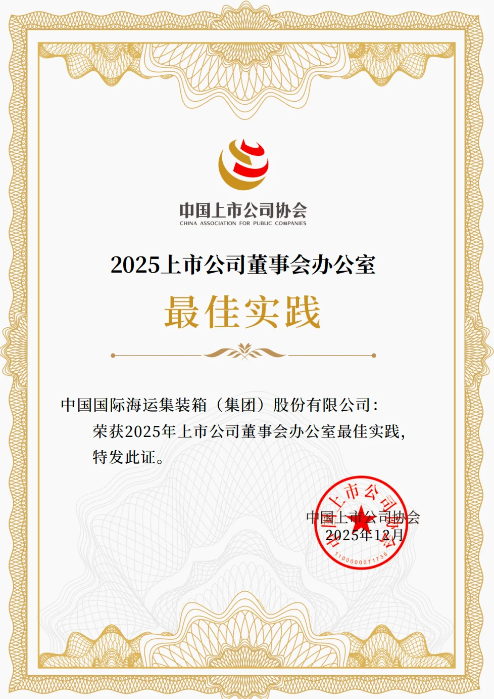 中集集团连续五年荣膺中上协“上市公司董办最佳实践”奖项