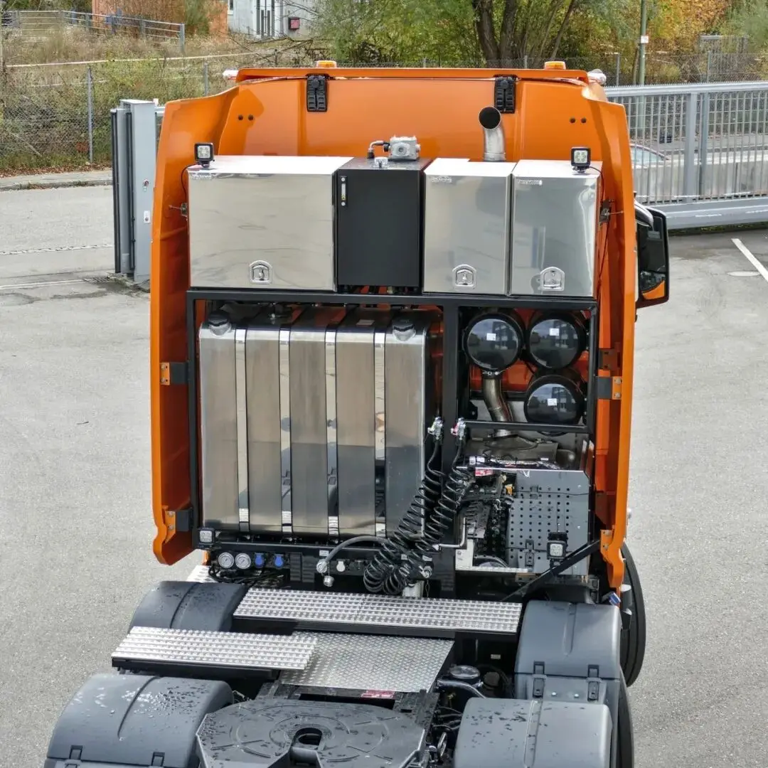 曼恩商用车中国介绍了一辆由Toni Maurer改装的曼恩TGX33.640牵引车,根据客户需求从三轴改为四轴,被称为“超短四轴”的车型。文章详细描述了改装后的车辆特点,包括高顶双卧铺驾驶室、工程保险杠、车顶灯具、铝合金油箱等。