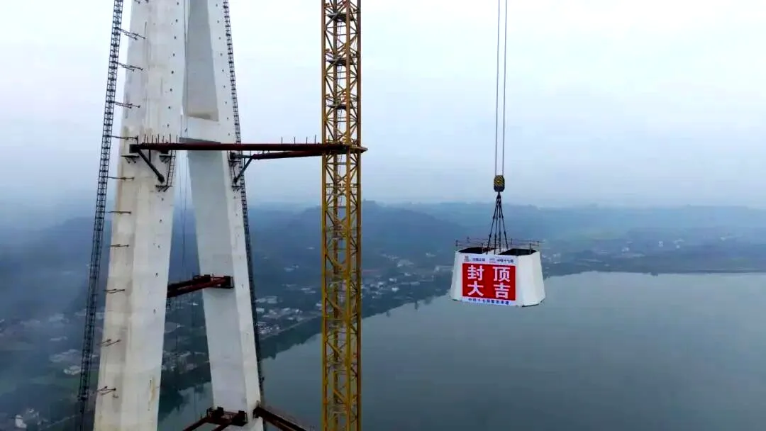 216.6米!徐工塔机助建汉阳湖岷江特大桥主塔封顶