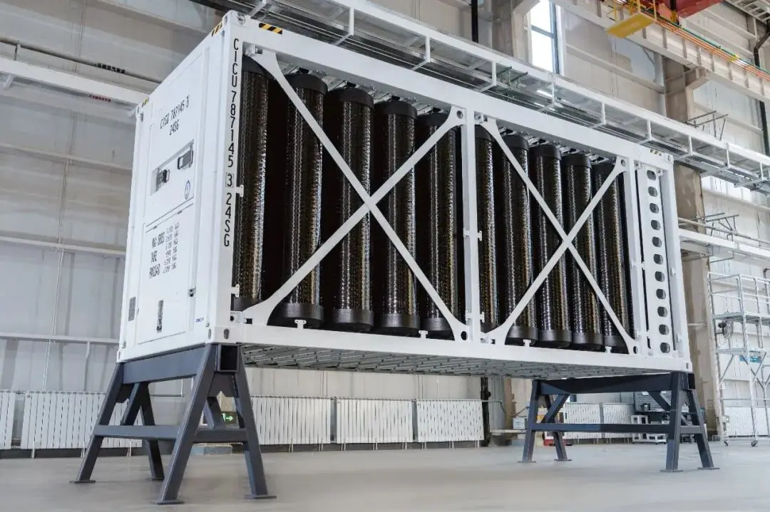 中集合斯康成功下线国内首台20英尺Ⅳ型瓶氢气管束集装箱,采用全复合材料气瓶设计,工作压力达38MPa,40英尺标箱装氢量超1吨,填补国内技术空白,推动氢能储运装备国产化进程。