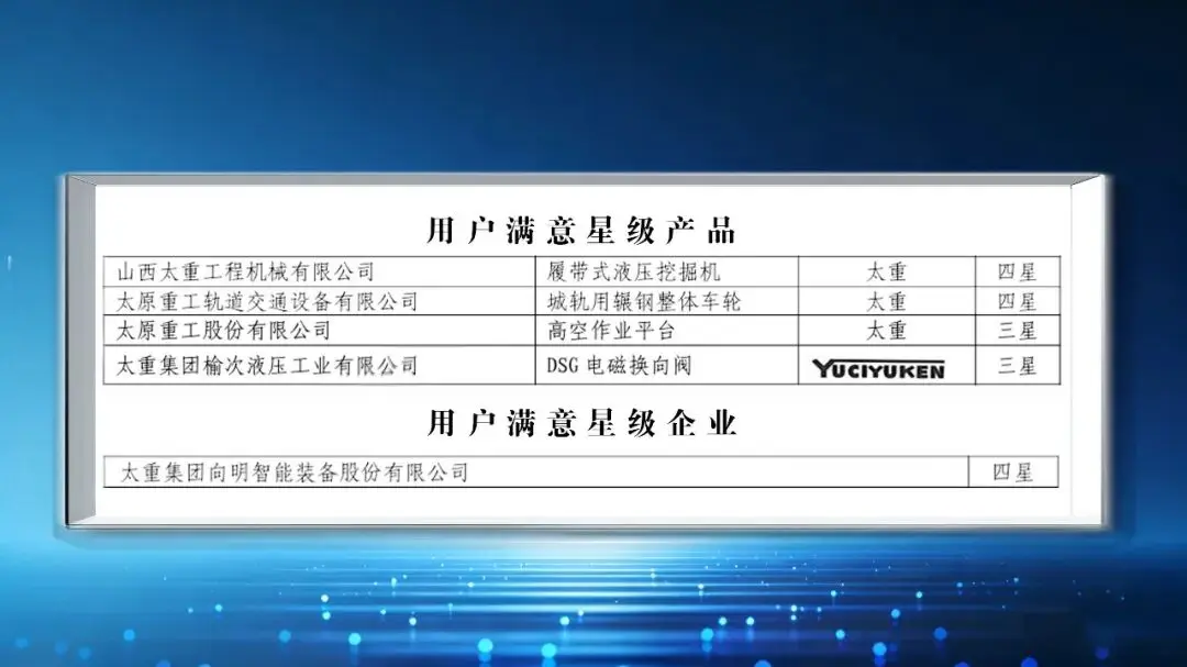 太重集团在2025年满意中国大会上获得多项星级产品认证,旗下的履带式液压挖掘机和城轨用辗钢整体车轮获得四星级评定,高空作业平台和DSG电磁换向阀获得三星级评定,同时太重集团向明智能装备股份有限公司也获得四星级企业评定,体现了太重对用户满意度的重视和强大的制造实力。