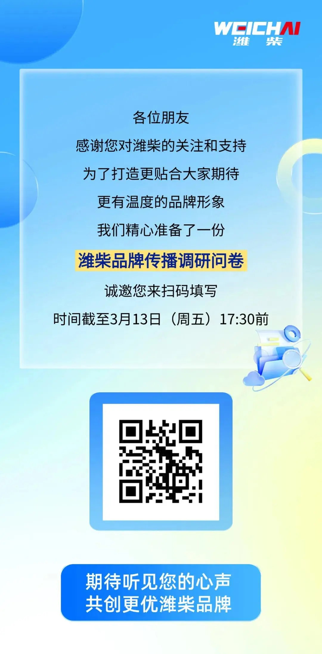 问卷调研 | 说出你的声音,做潍柴品牌共创者