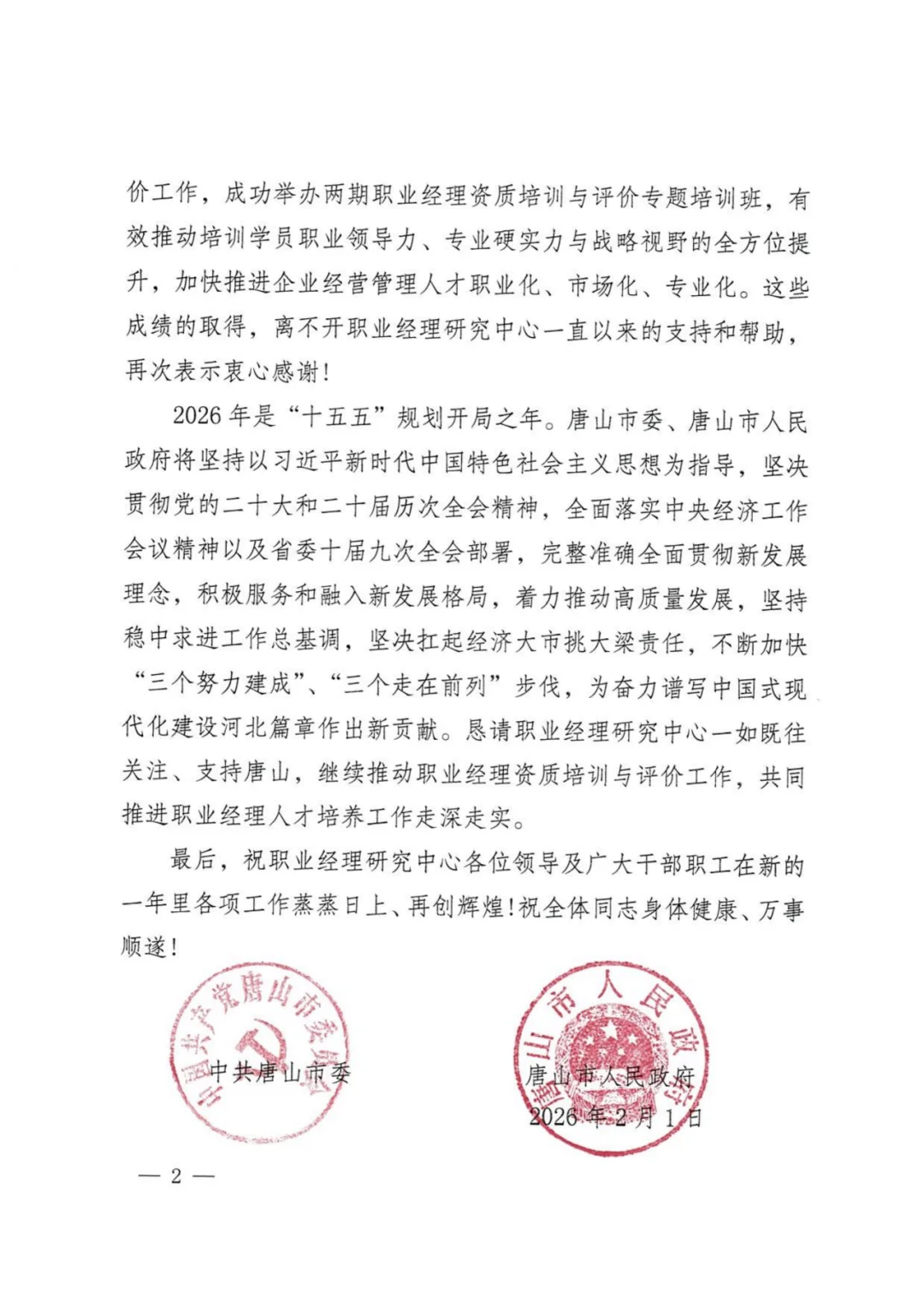 贺信传喜,聚力前行!亚特重工祝贺职业经理研究中心获唐山市委市政府感谢信
