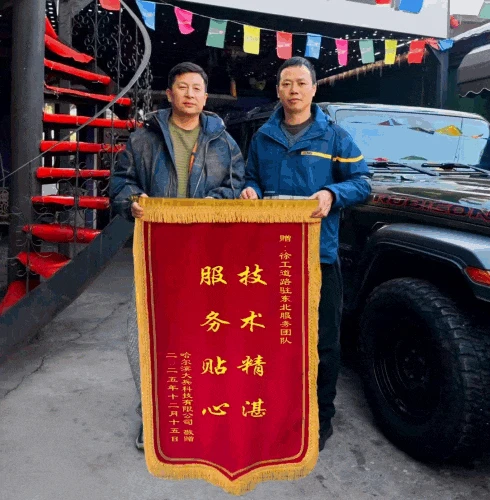 徐工服务工程师在零下40度的极寒条件下,克服恶劣天气,为客户修复XLZ2303K冷再生机和皮带箱设备,展现了技术精湛、服务贴心的专业精神,赢得了客户的高度认可和锦旗感谢。