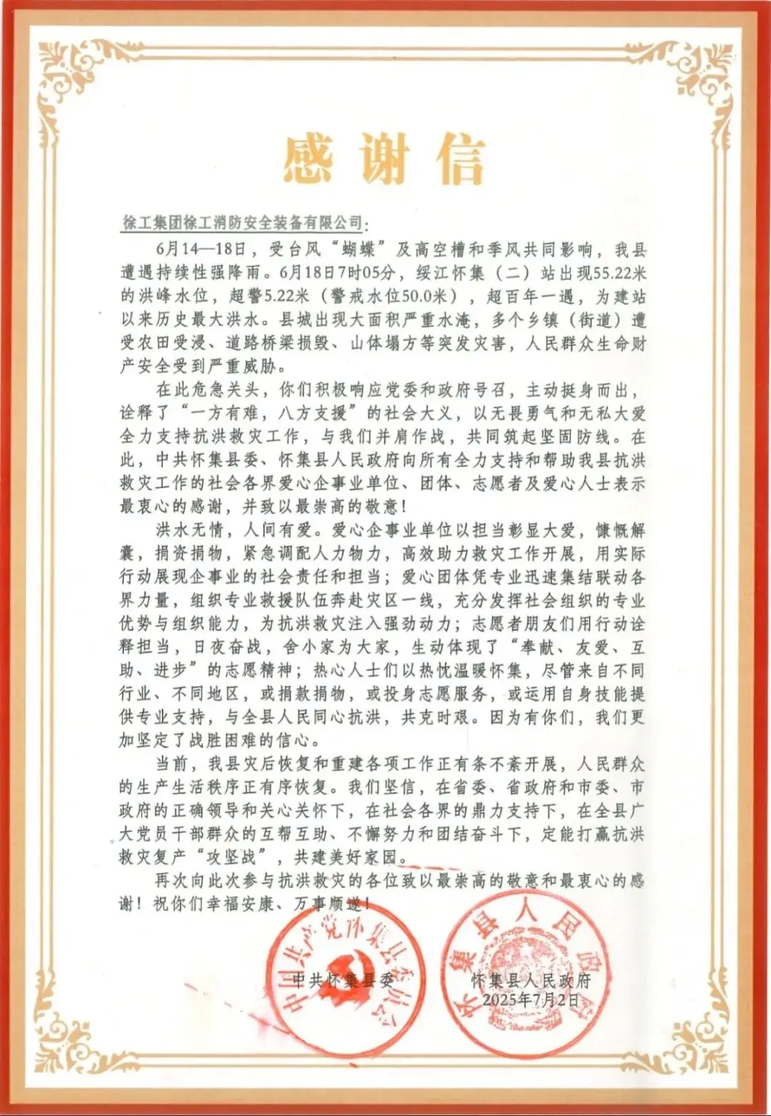 驰援四方,救援有我!徐工获全国多地暖心致谢