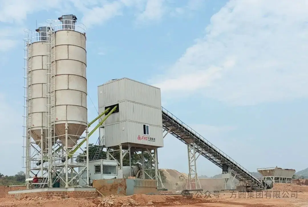 【施工利器】方圆HZS90型箱式搅拌站助力刚果(金)基础建设