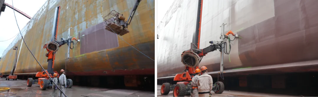 浙江鼎力推出“智能平台+机器人”战略,实现船舶领域高空作业和表面处理的自动化和智能化,推出了全球首创的船身除锈、喷涂机器人,该机器人基于模块化臂式平台,实现从除锈到喷涂的机械化与智能化升级,提高了作业质量和效率,降低了成本和安全风险,并符合绿色环保标准。