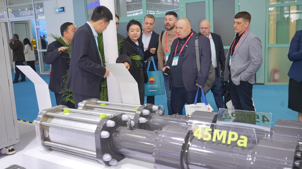 徐工基础在北京石油装备展上展示了油气钻采及压裂成套化装备,包括ZJ70/4500DB石油钻机、XYLC2500压裂车等,覆盖钻井、修井、压裂全作业链条,提供一站式油气装备解决方案,赢得客户认可与合作意向。