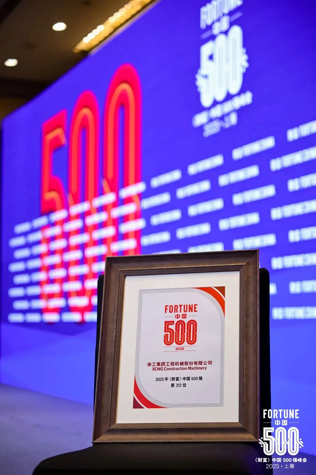徐工在2025年《财富》中国500强峰会上位列第212位,较上一年度排名提升,稳居行业榜首。文章强调了徐工在高端装备自主研发、无人化、智能化、绿色化产品研发方面的成就,及其在全球市场的广泛影响力。