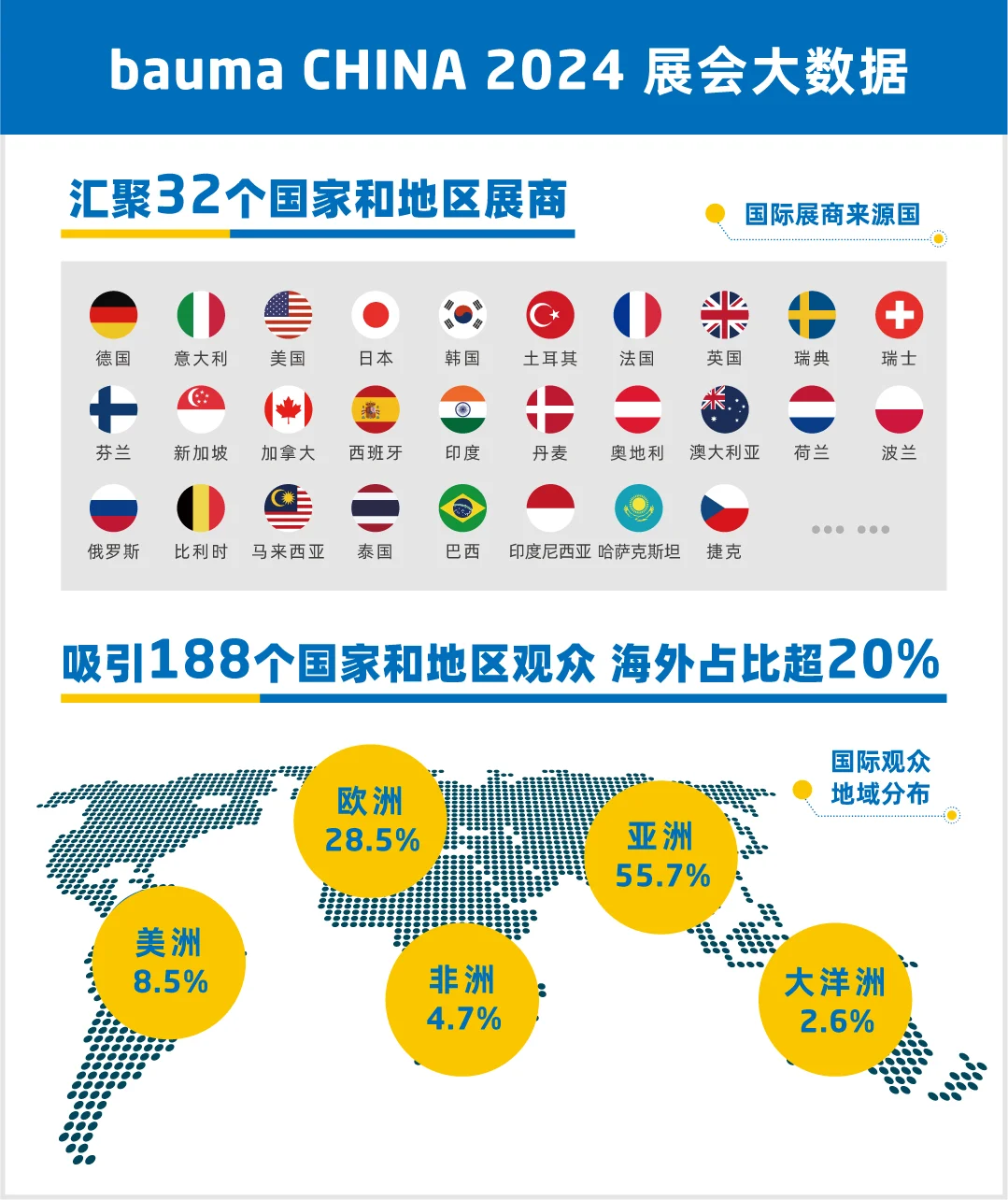 bauma CHINA 2026正在火热招展中,已吸引全球30个国家及地区的企业报名参展,包括美国、德国、印度等。bauma CHINA深耕中国市场22年,2026年11月将在上海新国际博览中心举办,展示行业新成果。