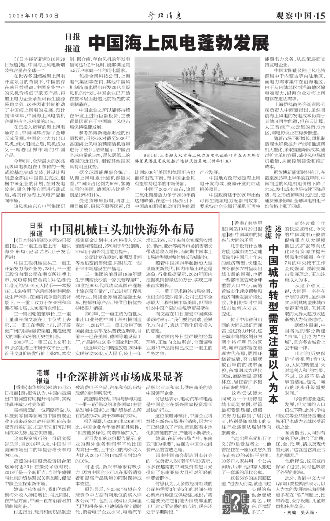 《日本经济新闻》关注三一:中国机械巨头加快海外布局