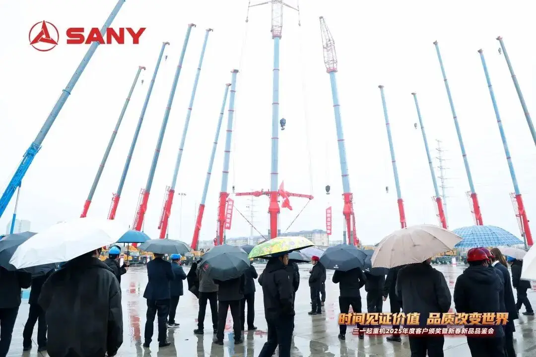 三一起重机举办2025年度客户颁奖暨新品品鉴会,现场交付4000t/3000t大型起重机,展示17款全吨位产品,强调'卷品质、卷价值'的经营理念,并提出'产品全生命周期价值提供'的服务理念。