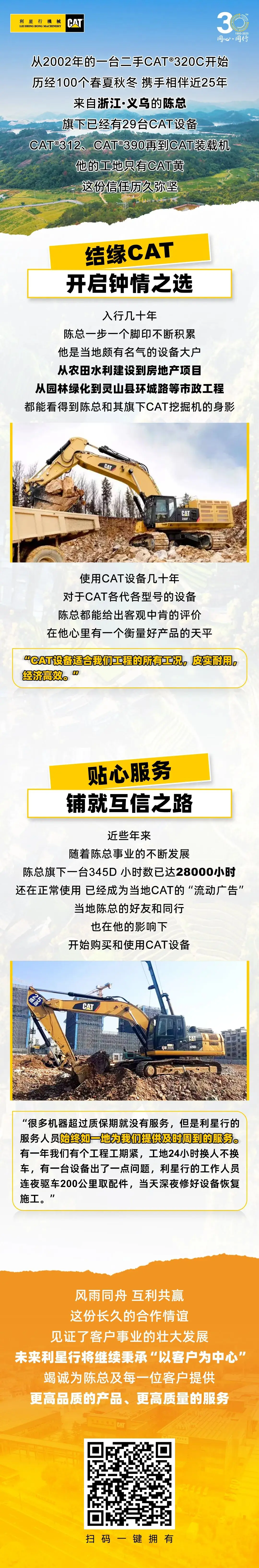 卡特彼勒中国发布文章,讲述了一位26年老客户选择翻新设备以实现高效作业的故事,展现了卡特彼勒对客户价值的重视和服务的专业性。