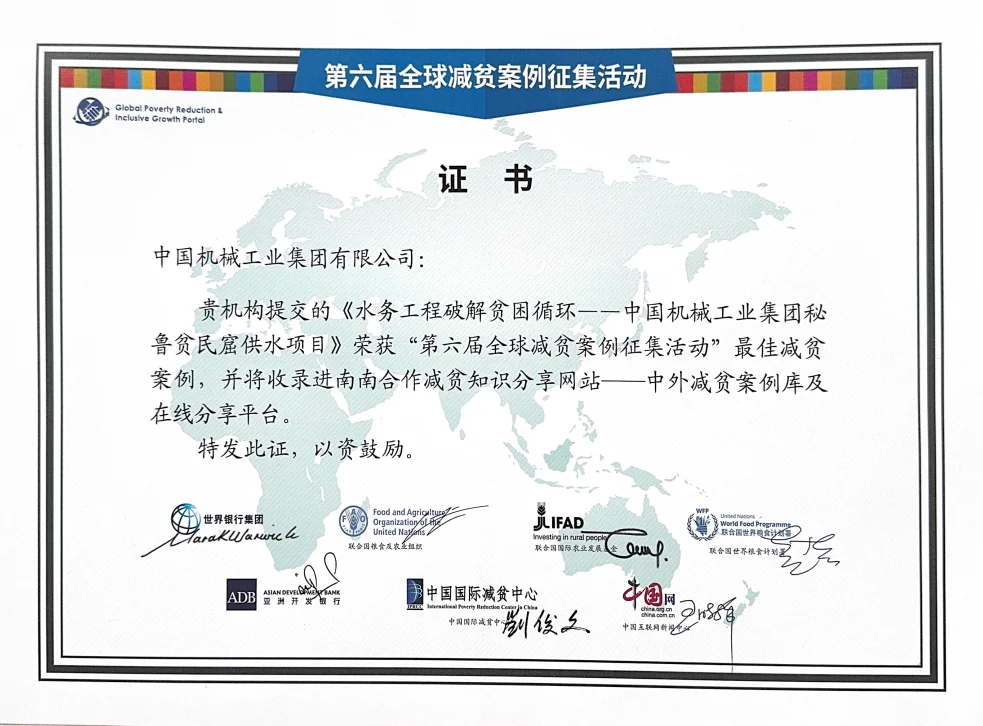 国机集团承建的秘鲁贫民窟供水项目被评为全球最佳减贫案例。该项目采用'基建+就业+赋能'模式,创造了大量就业机会,为社区提供了技能培训和赋能,有助于当地可持续发展。
