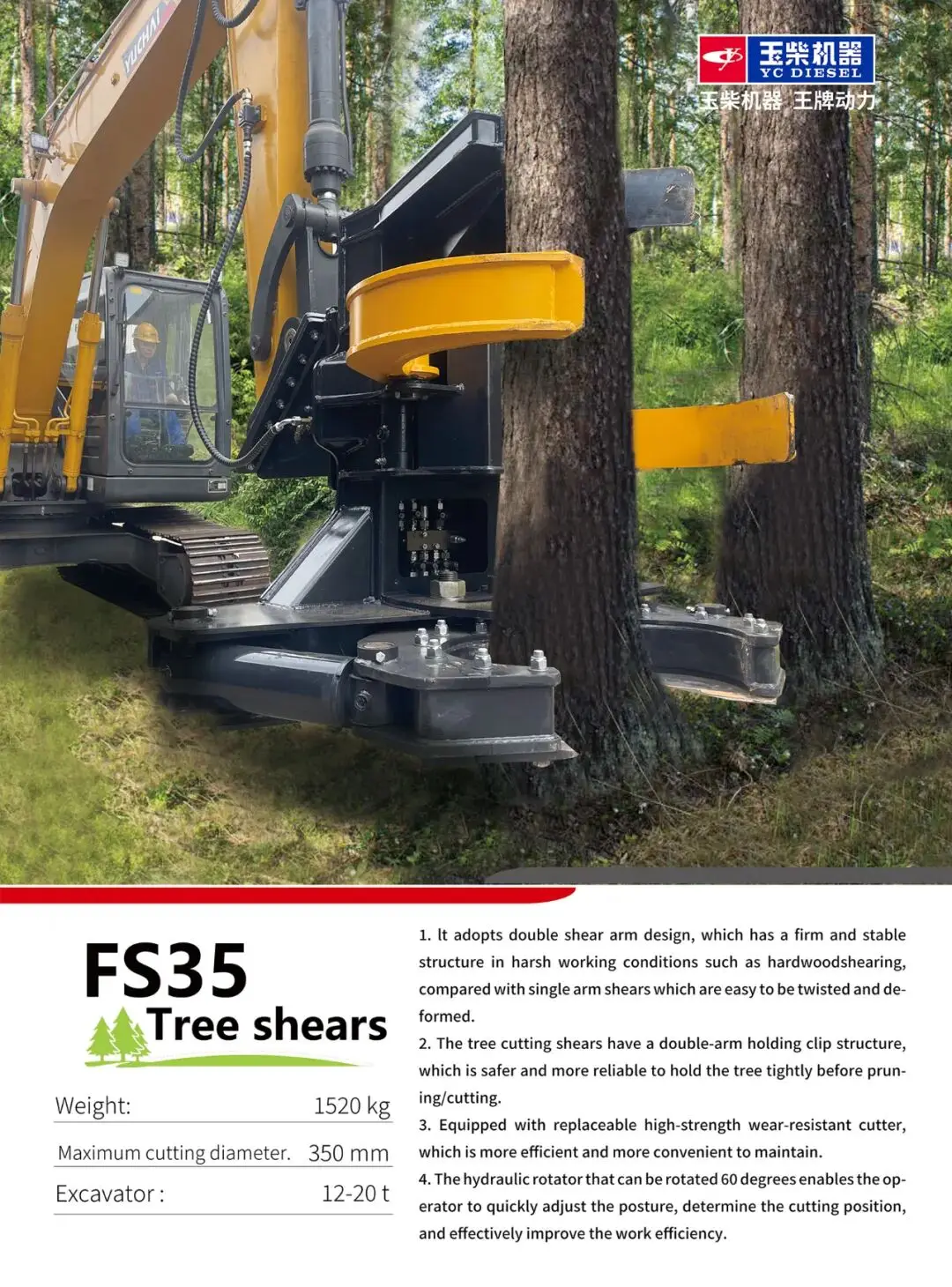 文章介绍了玉柴装备生产的FS35砍树剪,通过图片展示了产品的外观和特性。