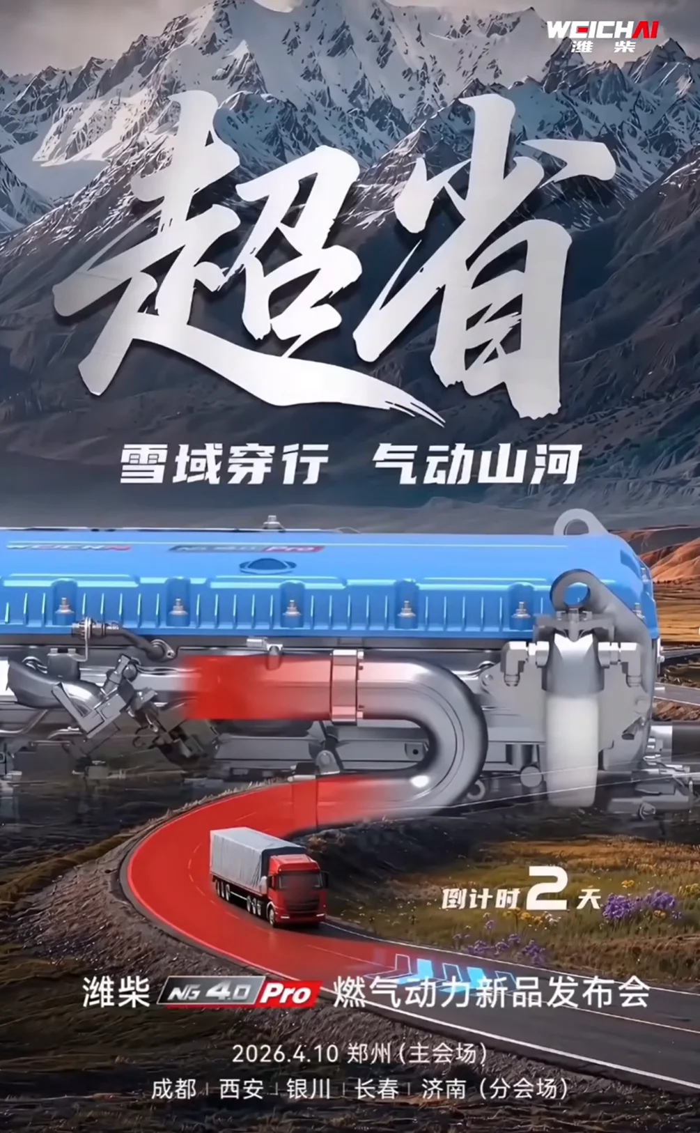 潍柴将于4月10日发布NG4.0 Pro燃气动力新品,该产品实现动力性、可靠性、舒适性全面跃升,气耗优势领先,覆盖全运输场景,打造定制化清洁动力解决方案。作为潍柴燃气动力第四次技术迭代,27年深耕细研,再塑行业新标杆。