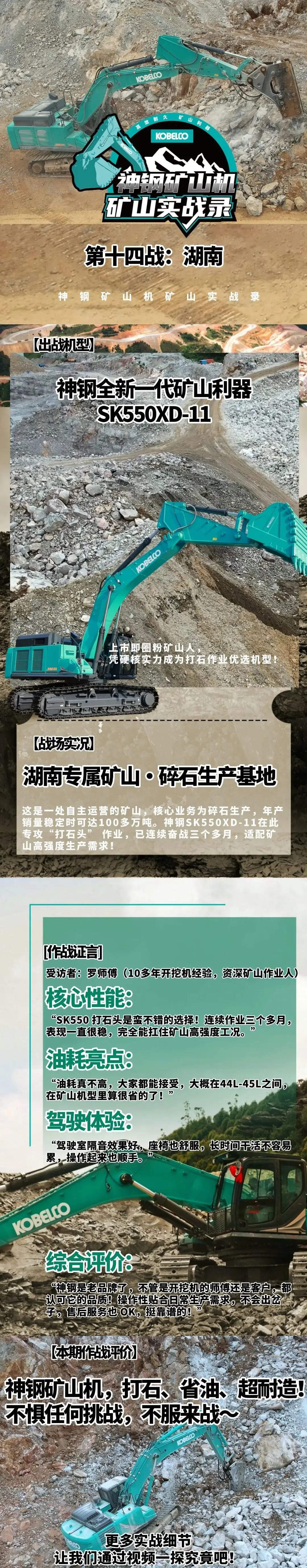 神钢建机KOBELCO推出SK550XD-11型号,适合矿山作业,特点是油耗低,驾驶体验良好。