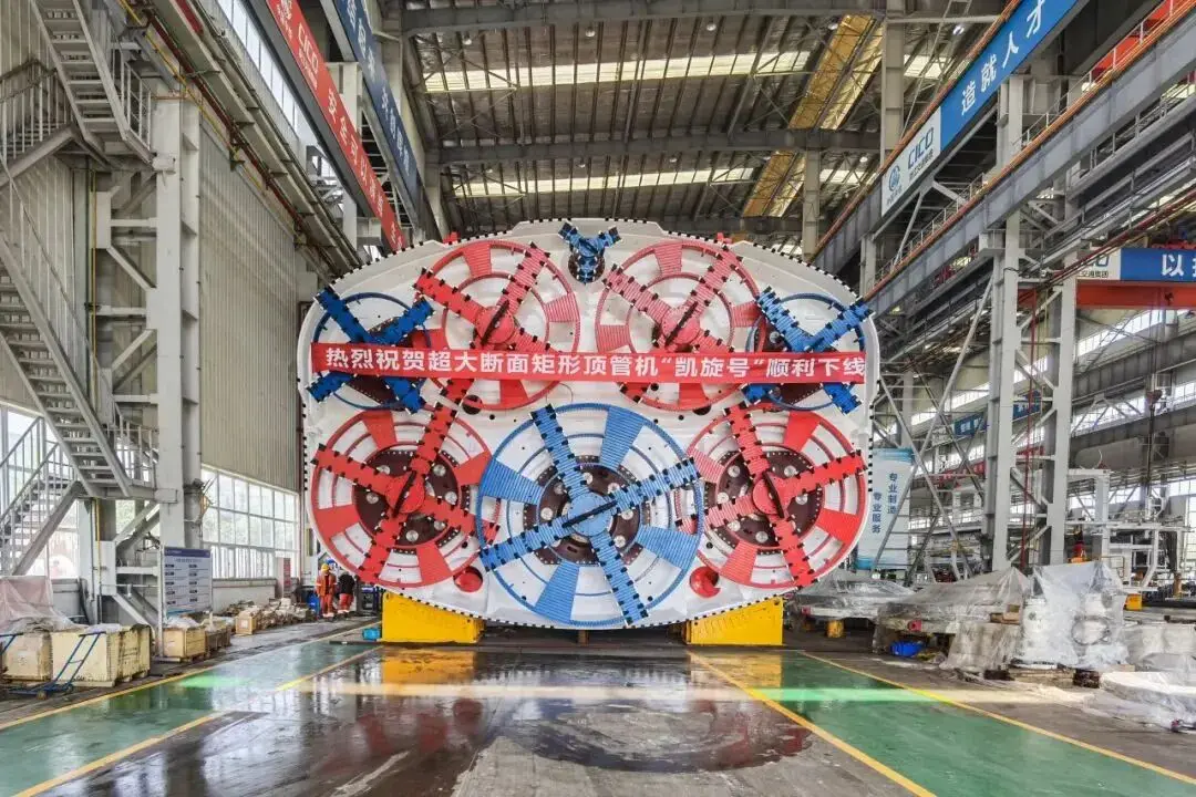 中铁装备研发的“凯旋号”超大断面矩形顶管机在杭州地铁18号线一期华家池站停车线成功始发,为全国首个应用于地铁停车线的超大断面矩形顶管机,展示了其低扰动施工、高安全标准的特点。